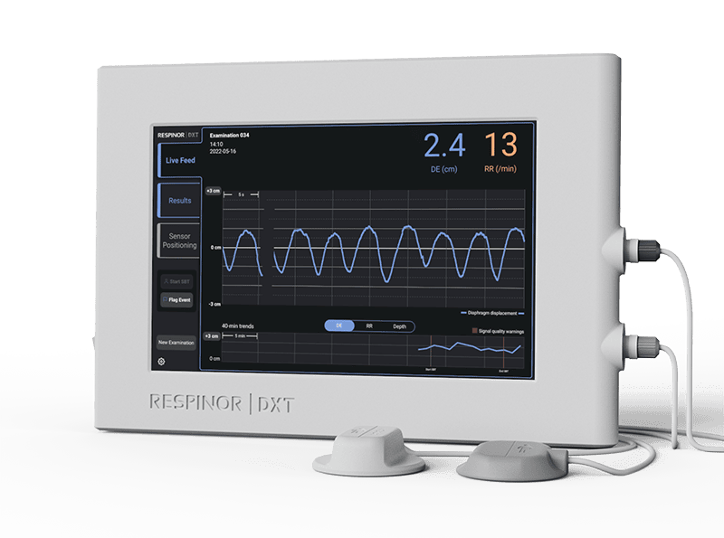 DXT, or Diaphragm Excursion Technology, is a ground-breaking non-invasive medical device developed by RESPINOR that utilizes ultrasound for operator-independent, continuous monitoring of the diaphragm, the main breathing muscle, in critically ill patients.